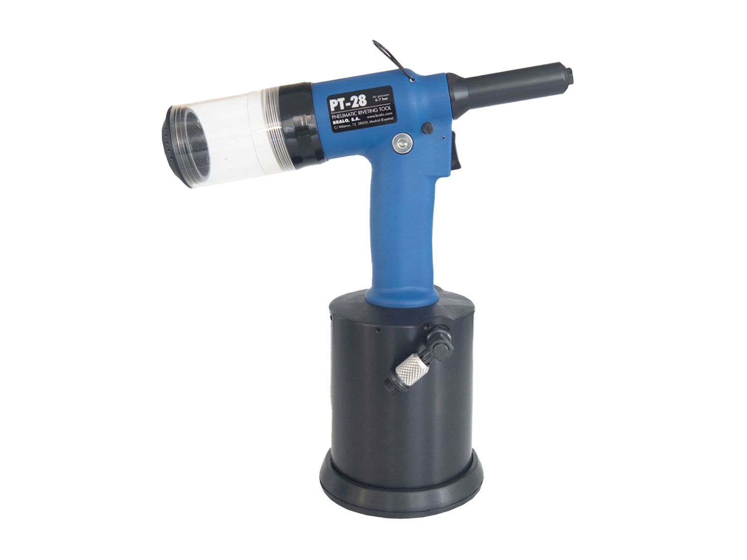 The PT-28 is the most powerful riveter in the range. With a pulling force of 28 kN, it can set structural rivets up to Ø7.8 mm and Ø6.4 mm collar lockbolts. Its performance and robustness make it a high-quality industrial tool.
