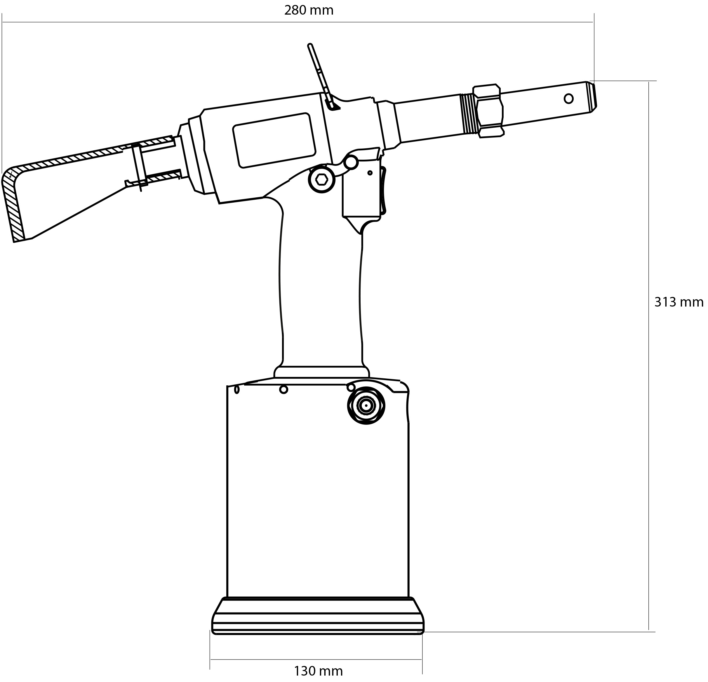 The BRALO PT-28LB Riveter is an efficient and robust setting tool. It is a high-powered tool designed to set Ø6.4 mm pin and collar lockbolts at high speed. Its performance and robustness make it a high-quality industrial tool.